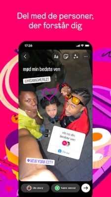 Hold dine relationer i live og del ufiltreret med dine kære. Fang og send spontane opdateringer med Stories og Noter, der elegant forsvinder efter et døgn, og invitér til nære samtaler i gruppechats med dine Nære venner. Lad din historie udfolde sig i dit feed, hvor du kan genoplive minder fra eventyr og tidligere begivenheder. Forvandl din dagligdag til fængende visuelle fortællinger med Instagram Reels, og giv dine opslag et personligt præg med et væld af eksklusive skabeloner, stemningsfuld musik, sjove klistermærker og kunstneriske filtre.