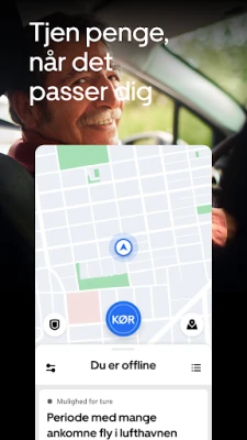 Oplev en smartere måde at styre din indtjening på. Efter hver gennemført tur giver Uber Driver Appen dig et klart overblik over, hvad du har tjent, direkte visualiseret på kortet. Planlæg din kørsel omkring dit liv med avancerede prognoser, der estimerer ventetiden til din næste anmodning og forudsiger passagertrafik i dit område de kommende 24 timer. Denne gennemsigtighed og planlægningsmulighed giver dig fuld kontrol over din tidsplan og dit indtjeningspotentiale.